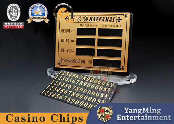 | Ονομασία του αντικειμένου | Αναβάθμιση σχεδιασμού πρίζας για Baccarat Ακρυλικό πόκερ τραπέζι τυχερών παιχνιδιών τραπέζι παιχνιδιών, όριο στοιχημάτων Σημάδι |